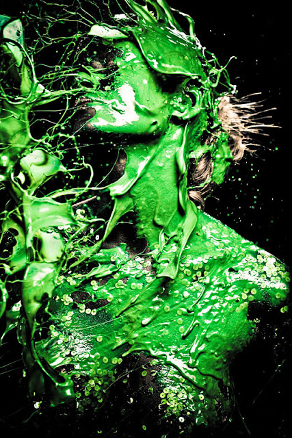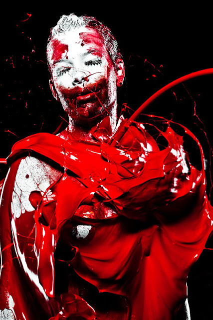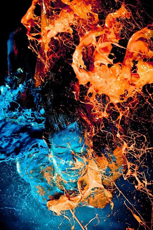 Cela m'a fortement rappelé le travail du photographe brésilien Gabriel Wickbold qui lance de la peinture sur des modèles et prends une photographie au moment de "l'impact".